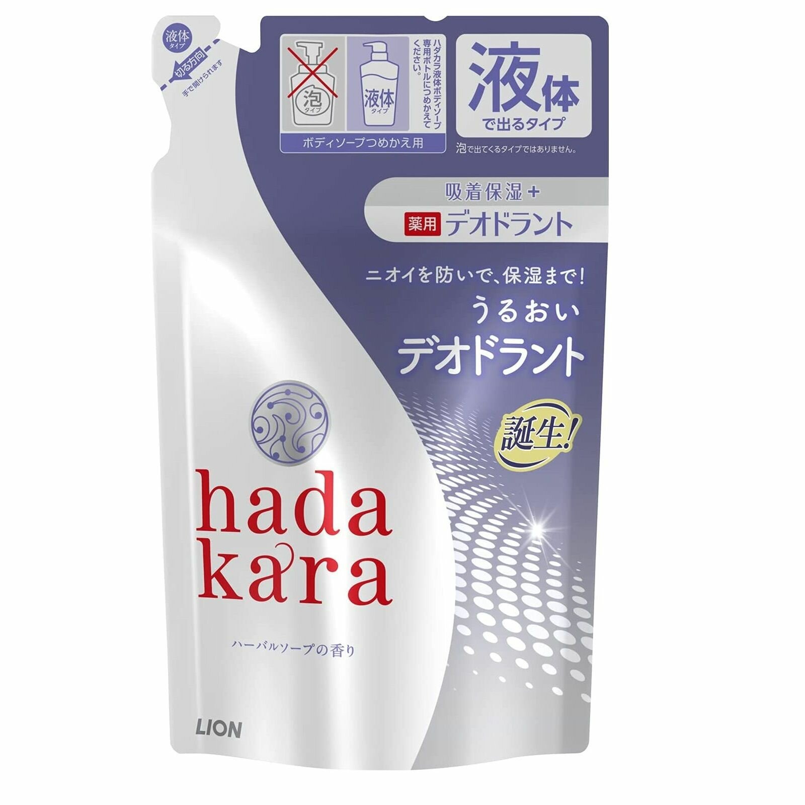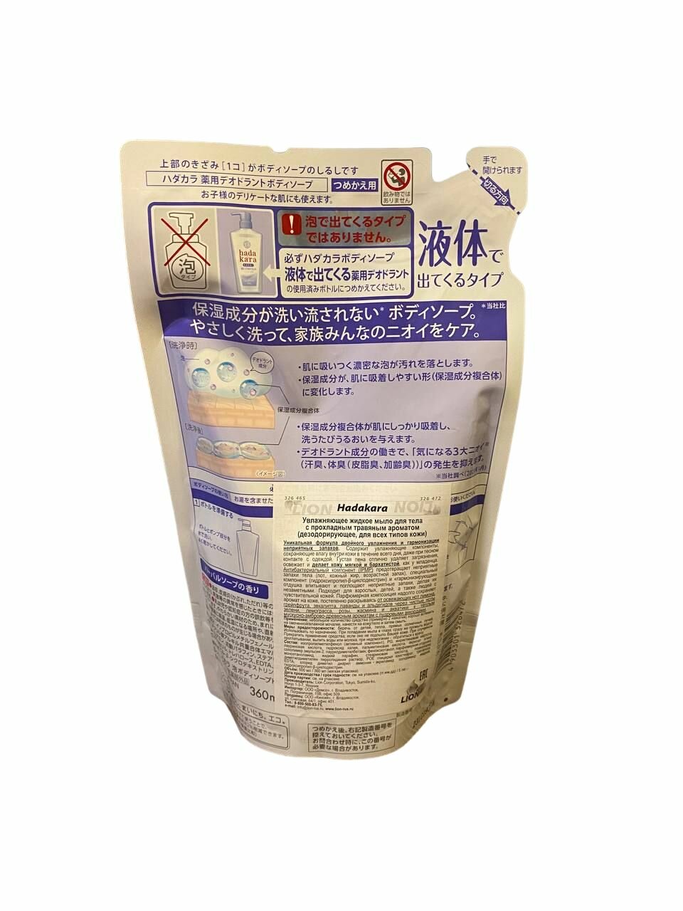 Купить LION Увлажняющее жидкое мыло для тела "Hadakara" с прохладным травяным ароматом (дезодорирующее, для всех типов кожи) 360 мл, мягкая упаковка