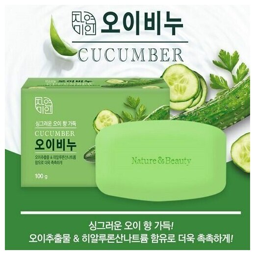 Супер мыло?пахнет свежими огурчиками. Увлажняет и восстанавливает кожу,улучшает цвет кожи,за счёт экстракта огурца и гиалуроновой кислоты. Не содержит опасных компонентов?. 100г.Корея |