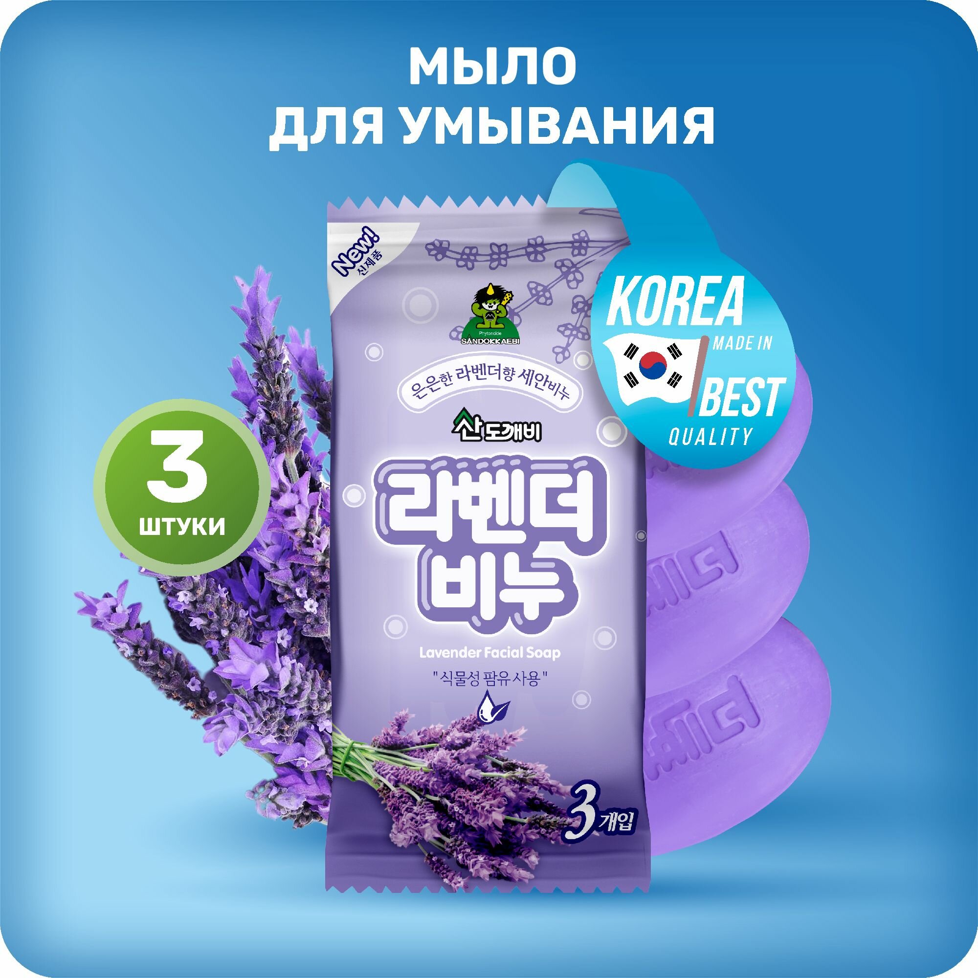 Sandokkaebi Косметическое туалетное мыло для лица на основе плодов масличной пальмы с ароматом лаванды, 80 г х 3 шт.