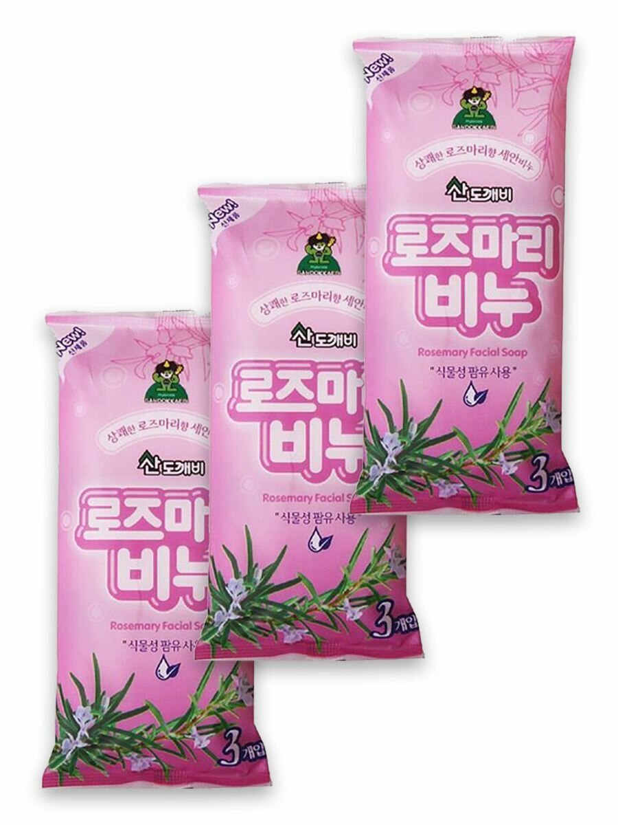 Sandokkaebi Косметическое туалетное мыло для лица на основе плодов масличной пальмы с ароматом розмарина, 80 г х 3 шт.