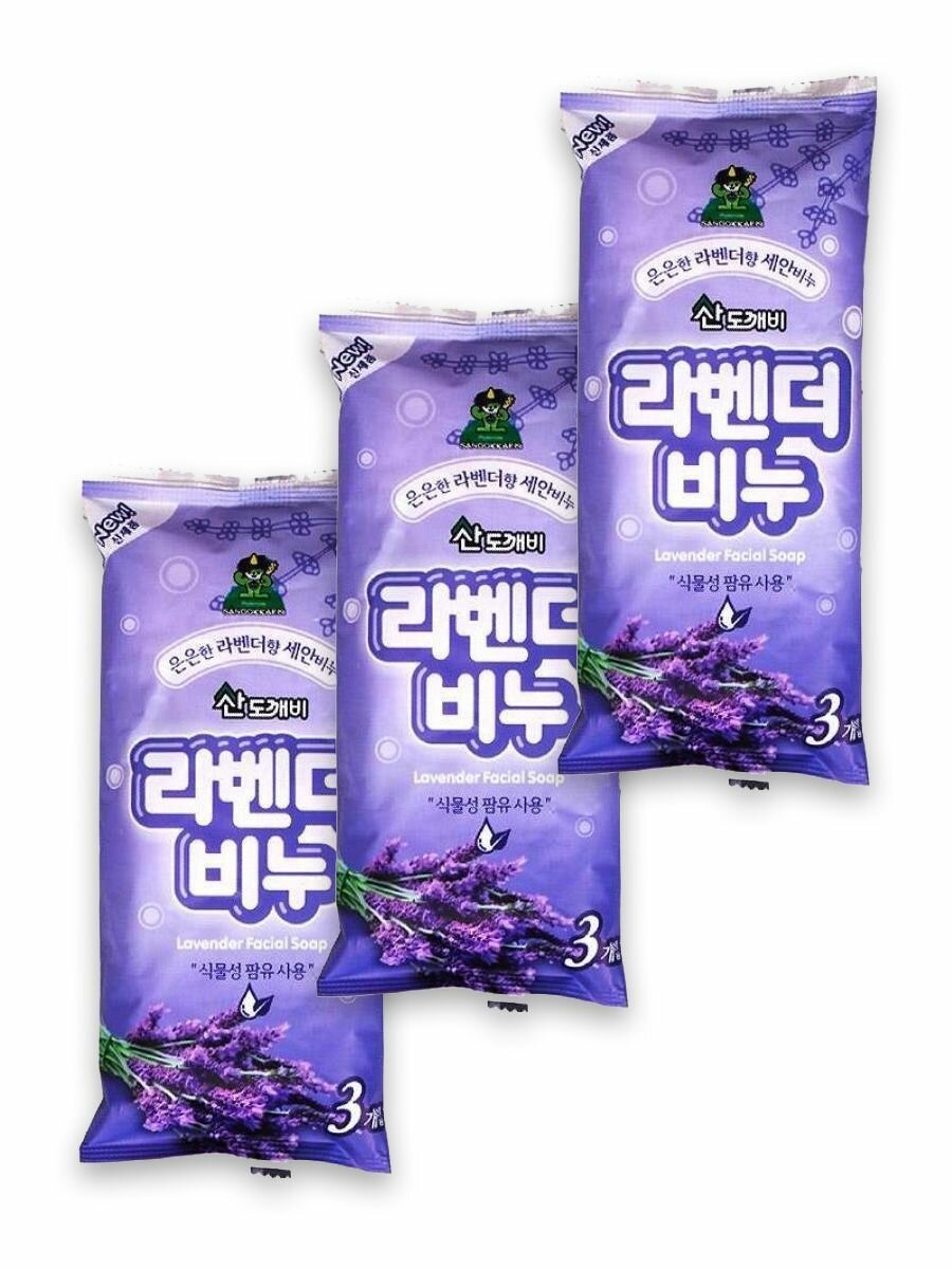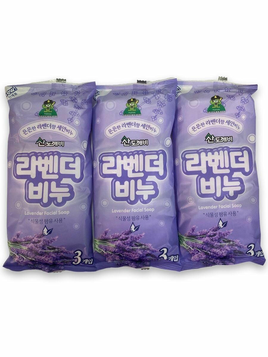Sandokkaebi Косметическое туалетное мыло для лица на основе плодов масличной пальмы с ароматом лаванды, 80 г х 3 шт
