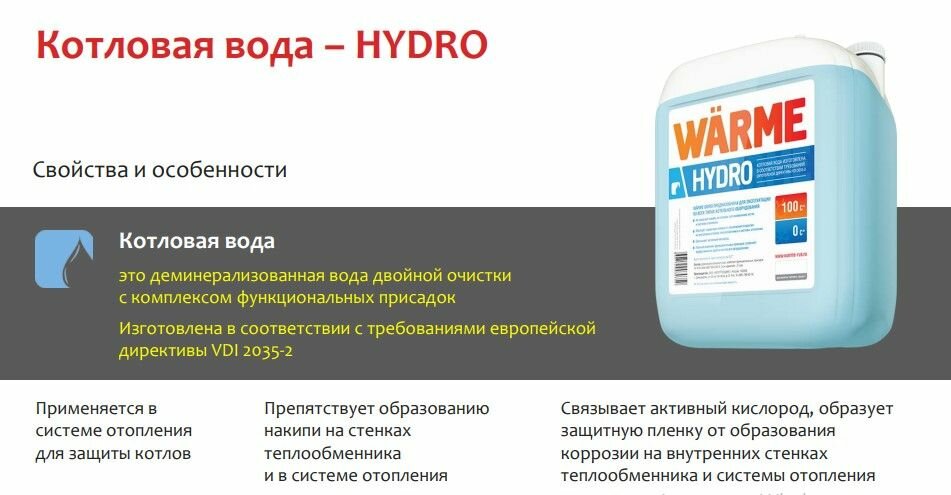 СохранитьWARME Подготовленная котловая вода Варме Гидро 10 кг HYDRO10 интересное: