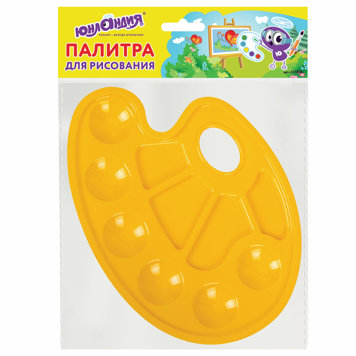 СохранитьПалитра для рисования, для смешивания красок детская овальная в школу, 6 ячеек для красок и 4 для смешивания, желтая, Юнландия, 227807 интересное: