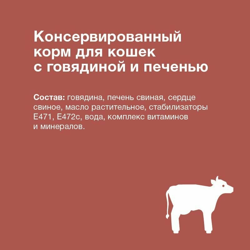 Консервы для кошек говядина с печенью 0,25 кг х 12 шт.