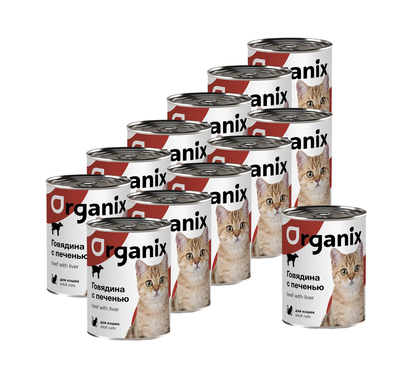 ORGANIX для взрослых кошек с говядиной и печенью (410 гр х 15 шт)