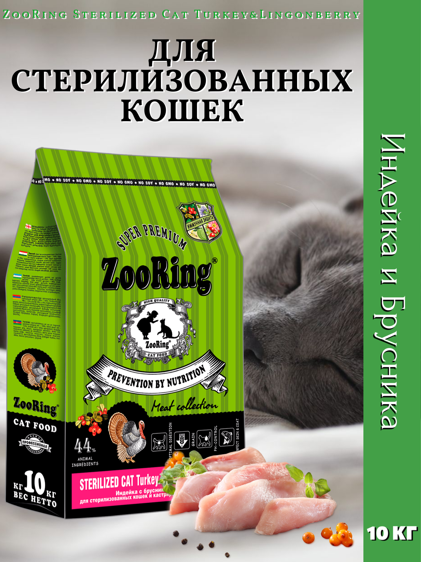 Сухой корм ZooRing TURKEY&Lingonberry Индейка с брусникой для стерилизованных кошек, 10кг