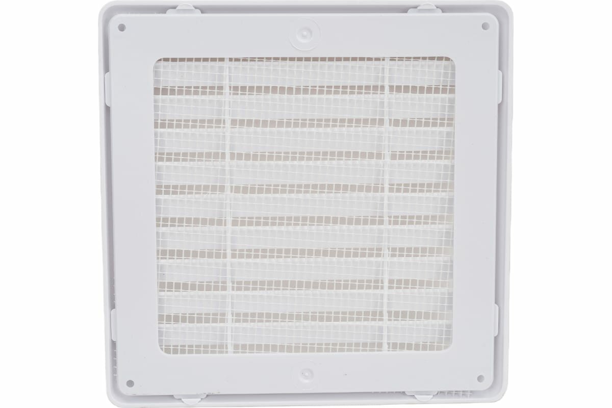 Решетка вентиляционная разъемная с москитной сеткой (наклонные жалюзи, белая, 180х180)