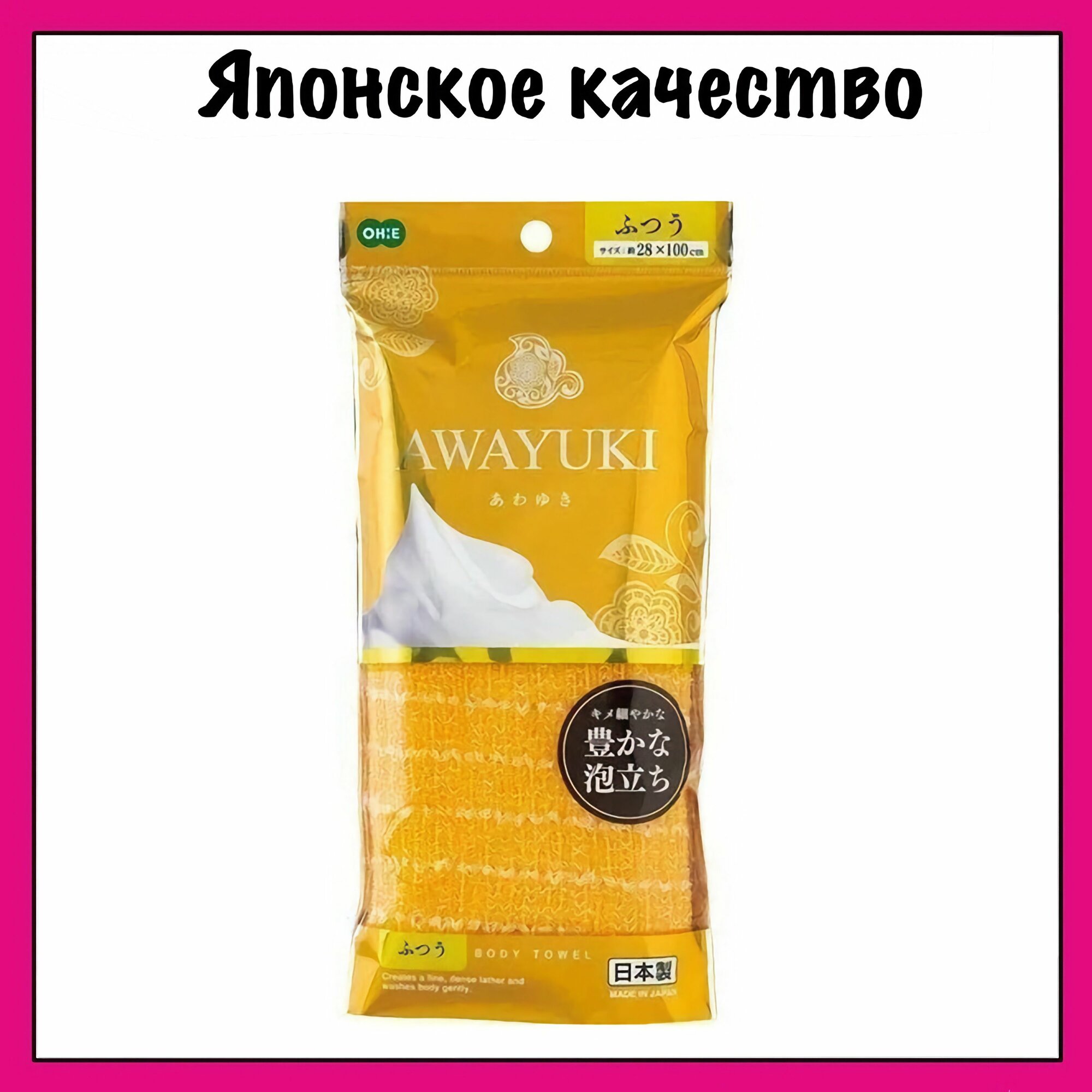 Купить Ohe awayuki Японская массажная мочалка "Увлажняющая пена" средней жесткости 28Х100 см желтая