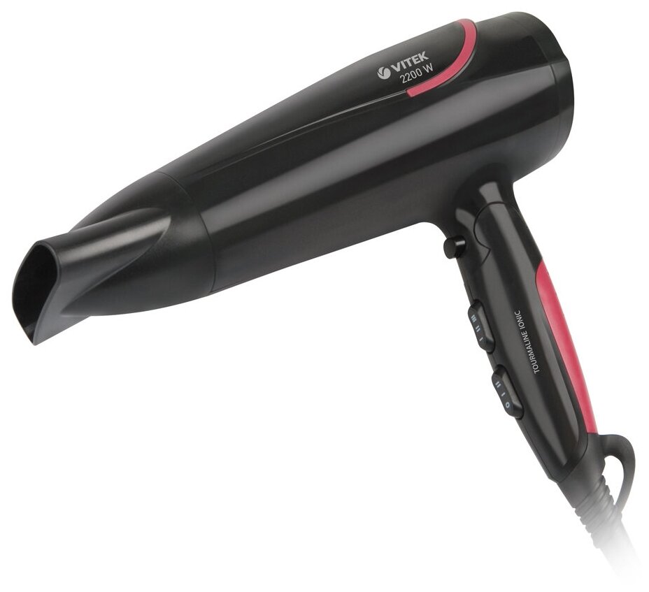 Фен Vitek VT-8226 черный/розовый, полноразмерный, 2200 Вт, подача холодного воздуха, турмалиновая ионизация, шнур - 1.8 м