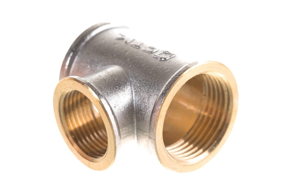 Тройник латунь внутр./внутр./внутр. резьба 1/2дюйм никель (инд. упак.), RTP 34919 (1 шт.)