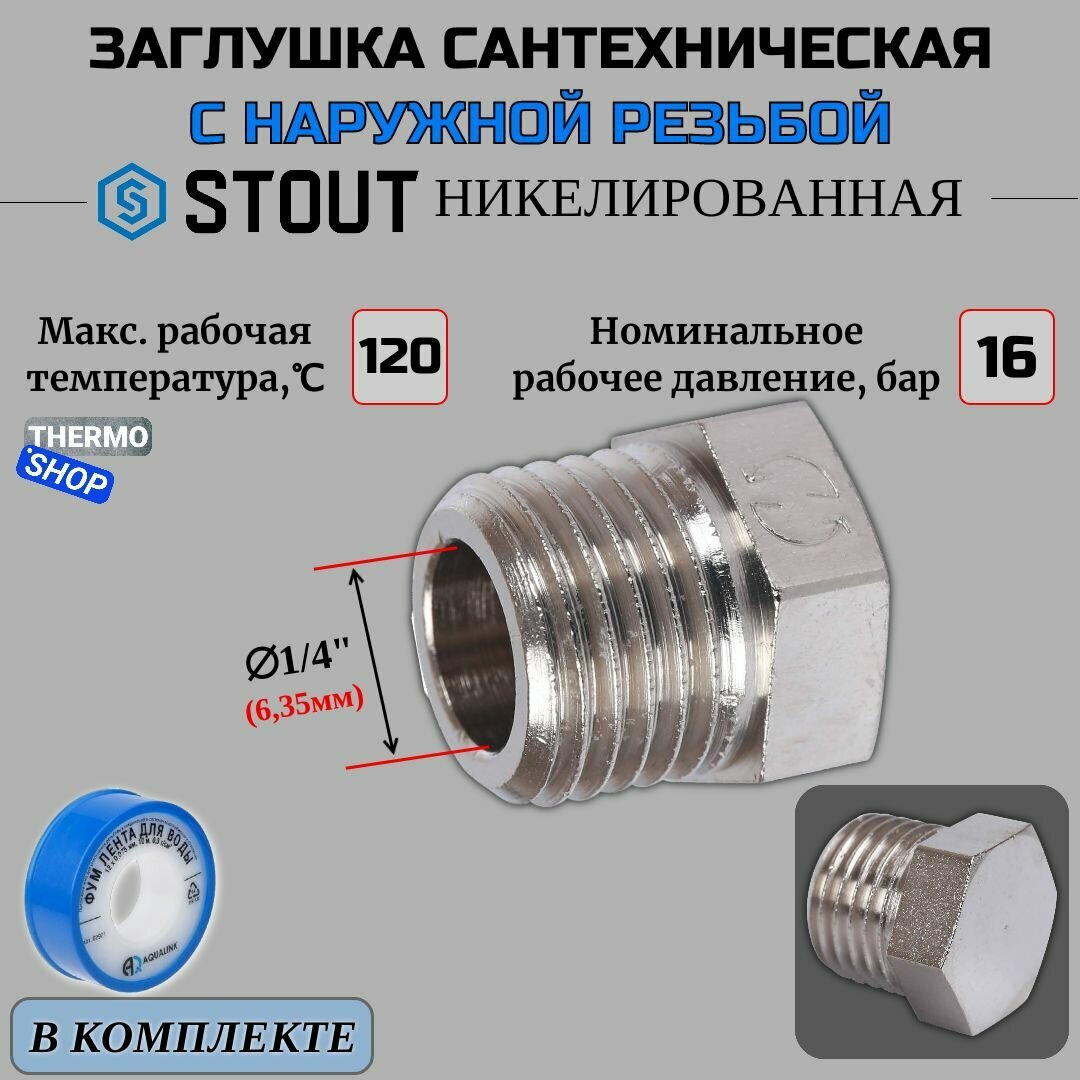 Купить Заглушка НР никелированная 1/4 STOUT и Фум лента