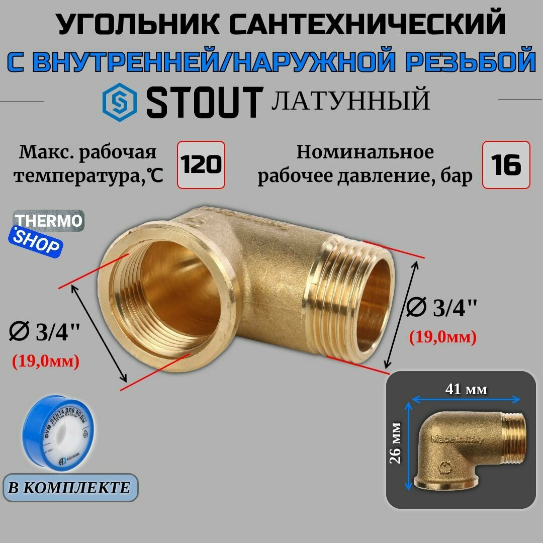 Отвод 90° латунный резьбовой равнопроходный STOUT (НР/ВР) - 3/4" (2шт)