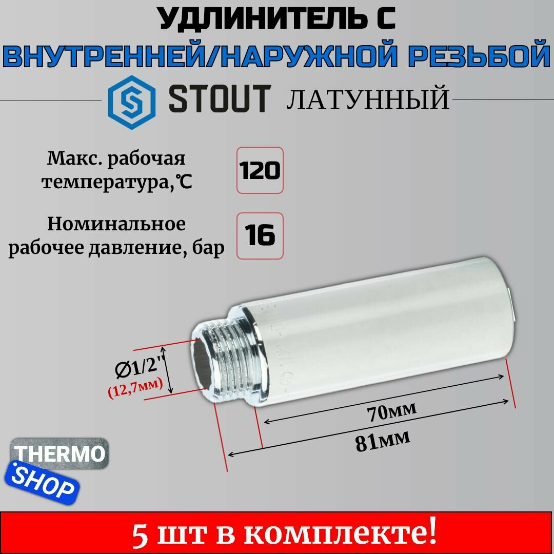 Удлинитель Stout (SFT-0002-001230) 30 мм х 1/2 ВР(г) х 1/2 НР(ш) латунный