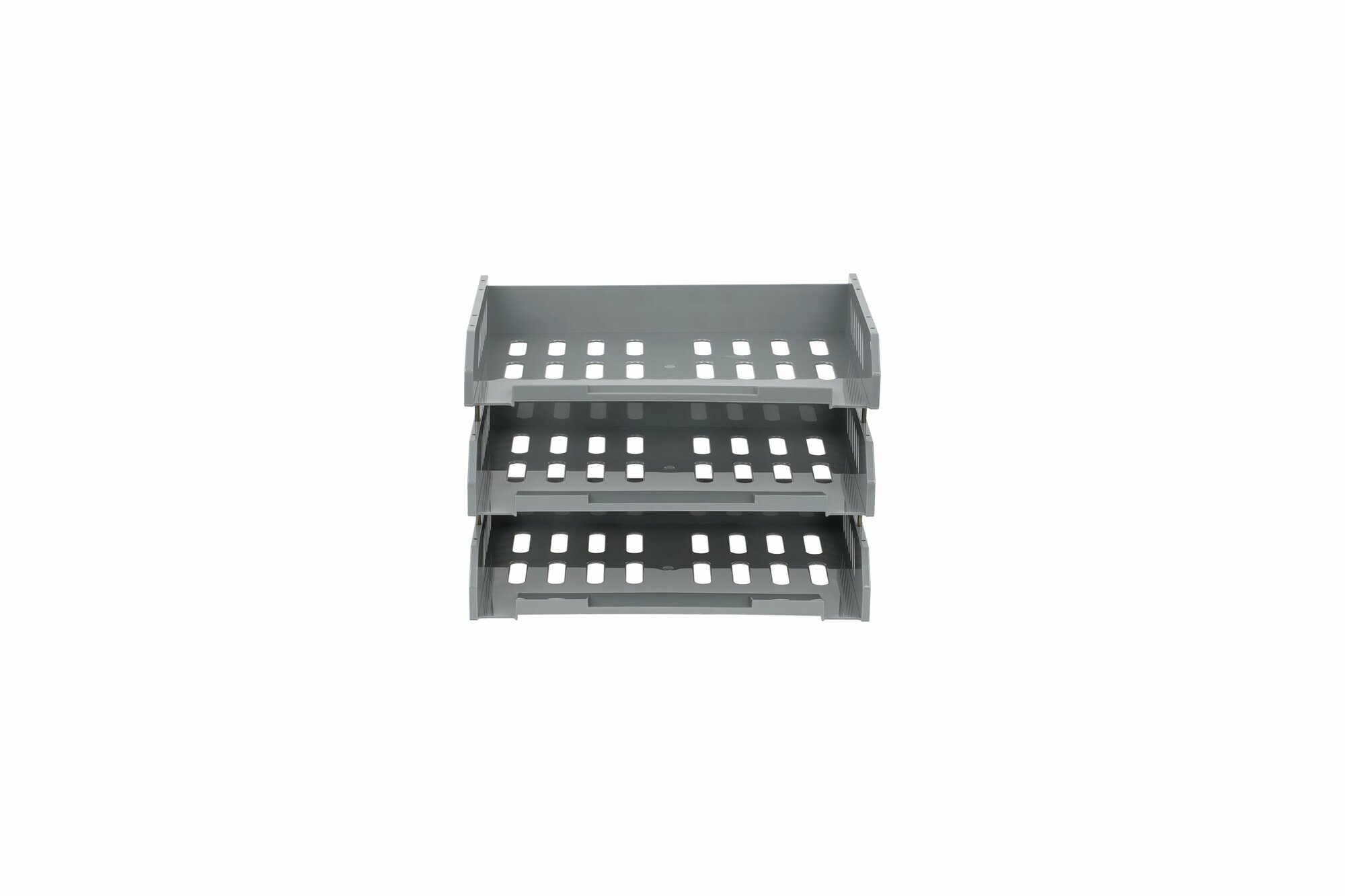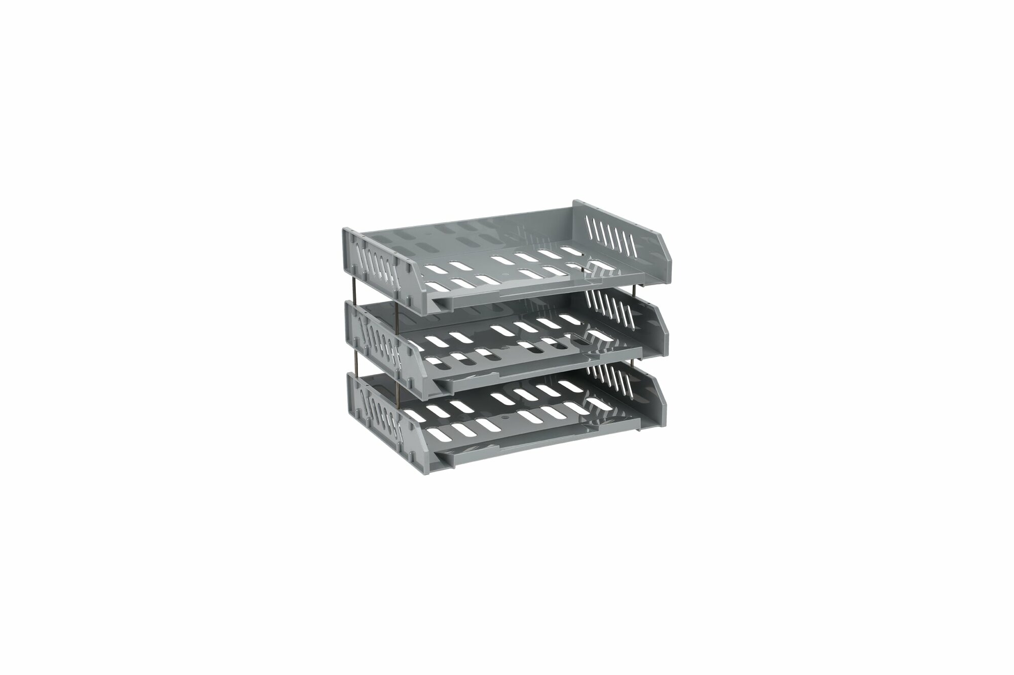 Набор горизонтальных лотков для бумаг с широкой загрузкой "Сити", 3 штуки, на металлических стержнях, серый