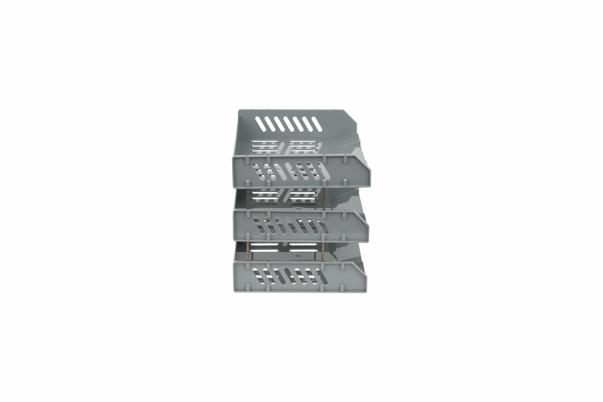 Лотки для бумаг СТАММ горизонтальные, 3 шт, "Сити", поперечные, на металлических стержнях 6 см, серые (ЛТ561)