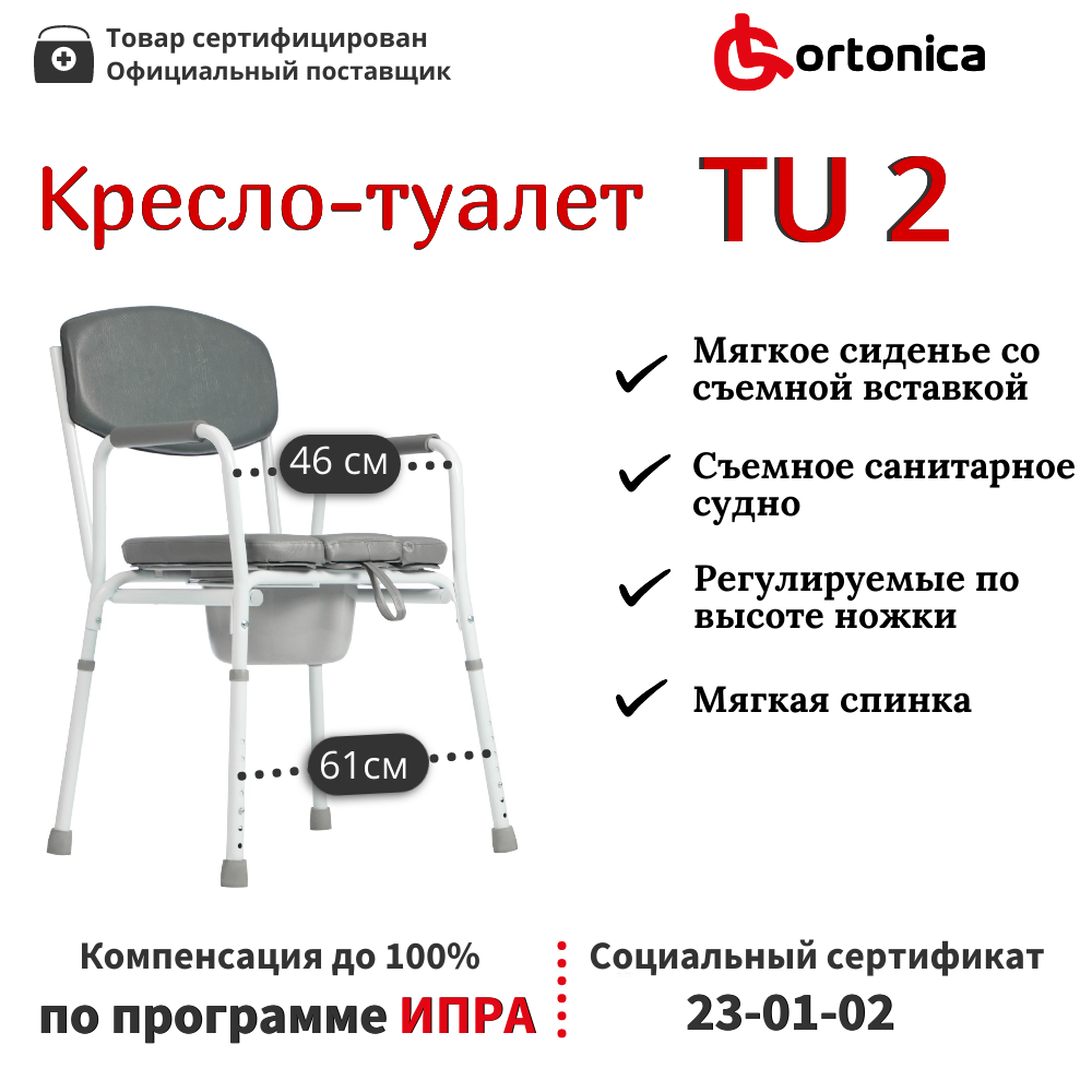 Cтул туалет Ortonica TU 2 с мягким сиденьем до 130 кг Код ФСС 23-01-02