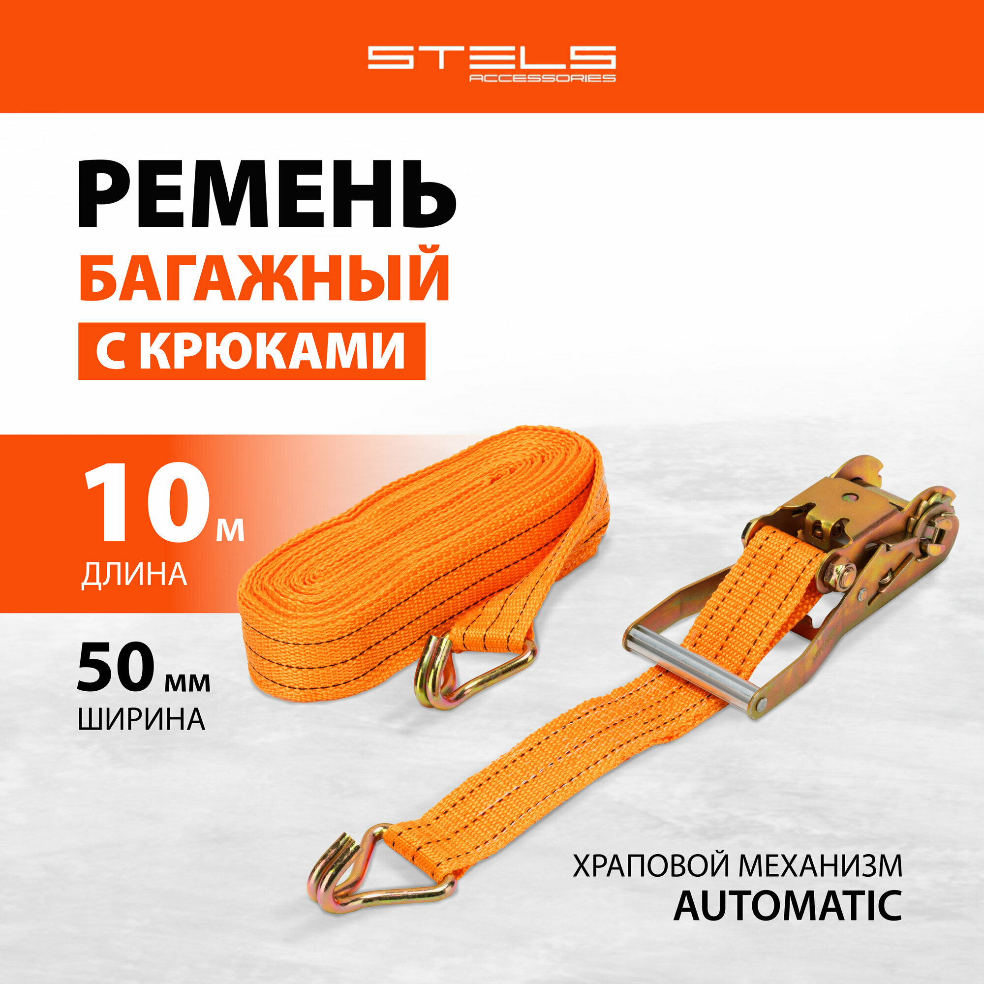 Ремень багажный с крюками, 0.05 х 6 м, храповой механизм Россия Stels ( 54385 )
