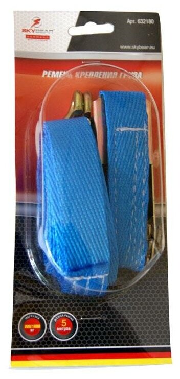 Ремень крепления груза 800/1600кг SKYBEAR длина 5м, храповый механизм 110мм 632180