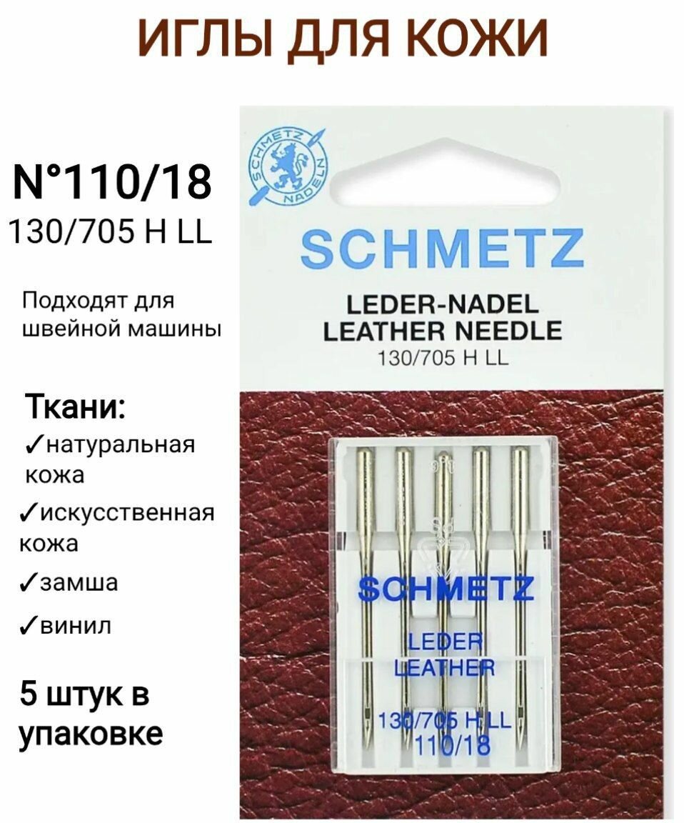 Игла/иглы Schmetz Leather 130/705 H LL 110/18, серебристый, 5 шт.