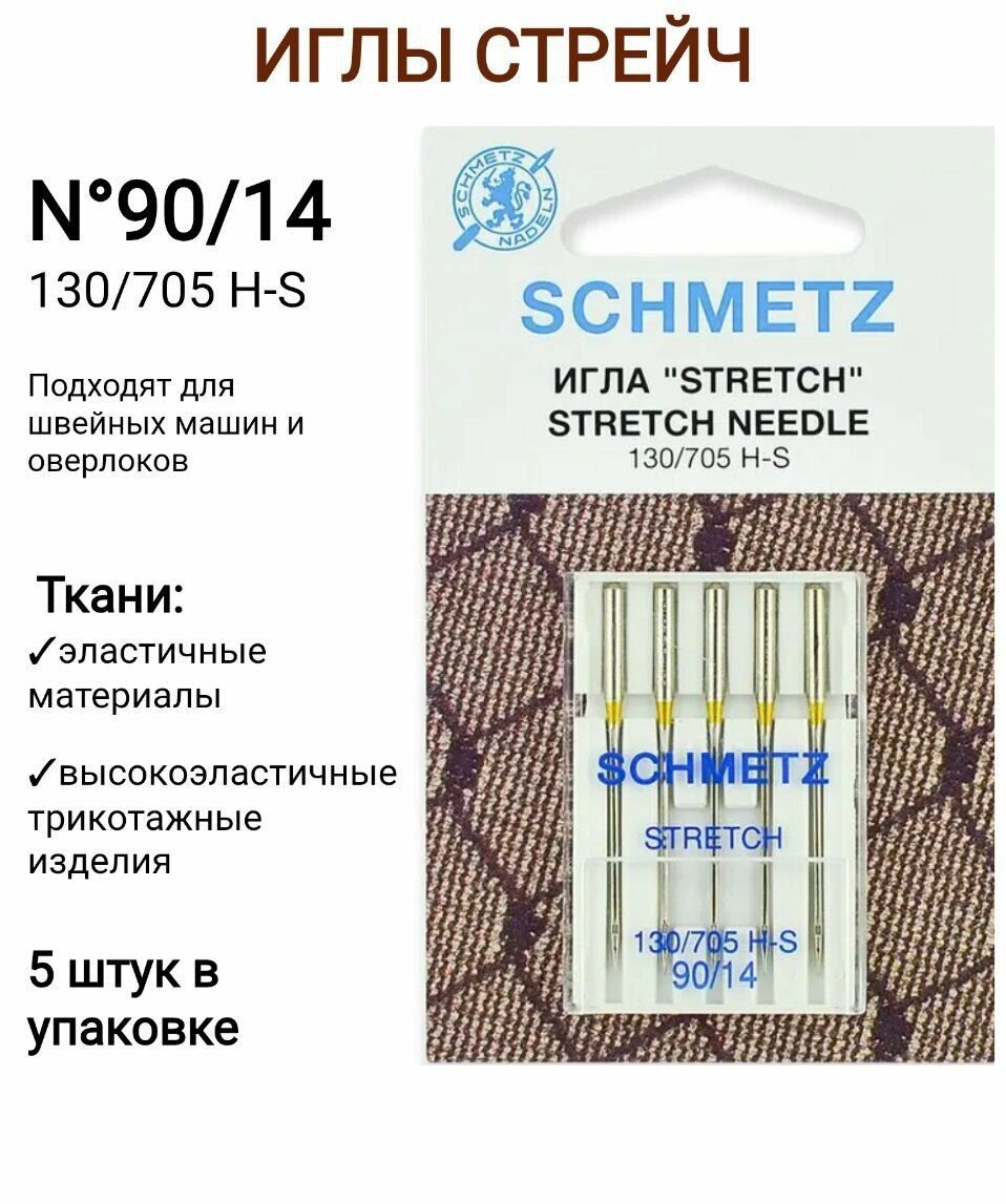 Иглы для швейных машин SCHMETZ для стрейча и трикотажа, №90, 5шт, 1шт интересное: