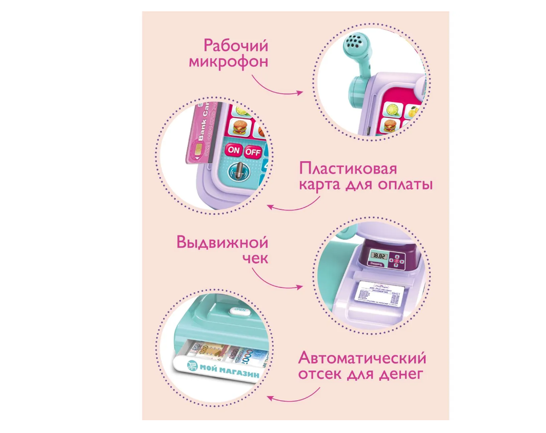 BeiBe Good Кассовый аппарат с аксессуарами 25 предметов, звук, розовый 888J с 3 лет