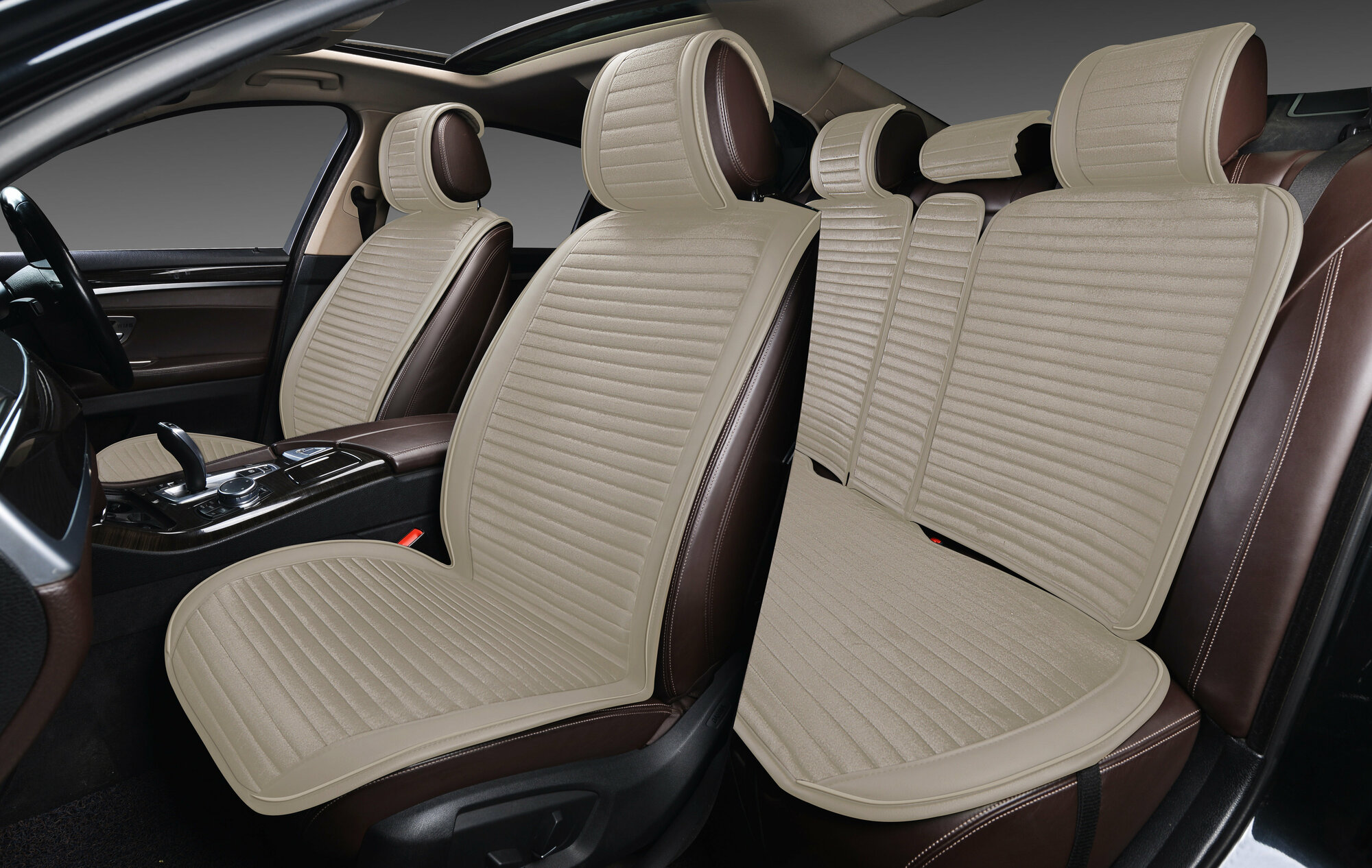 Накидки на сидения PSV "Bliss", бежевые, вельвет/экокожа, комплект