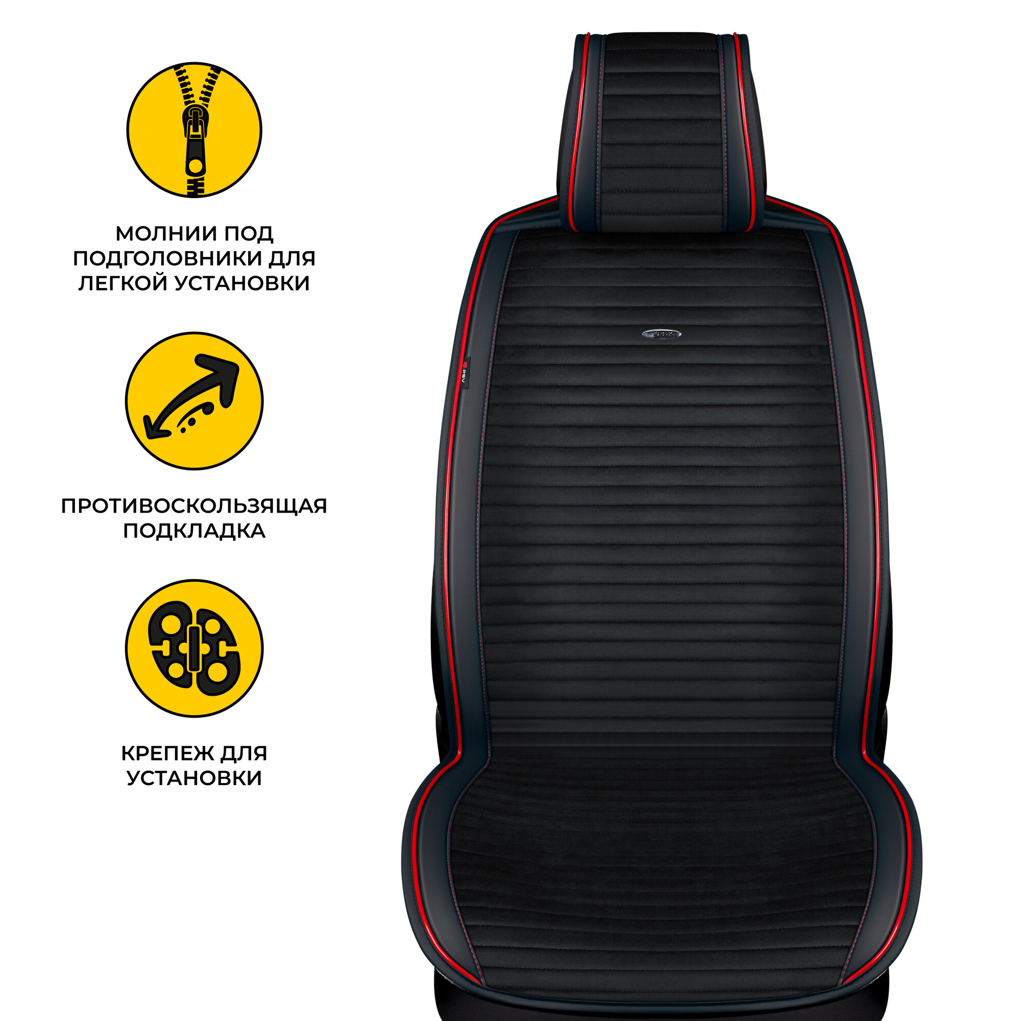 Накидка на сиденье велюр+экокожа "PSV" Bliss 2 FRONT (Черно-Красные), компл. на передние сидения