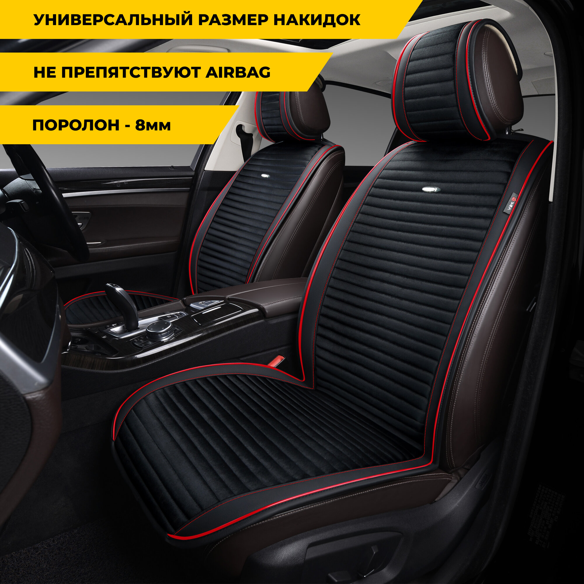 Накидки на сиденья автомобиля Блис 2 черно-красный, на передние сиденья