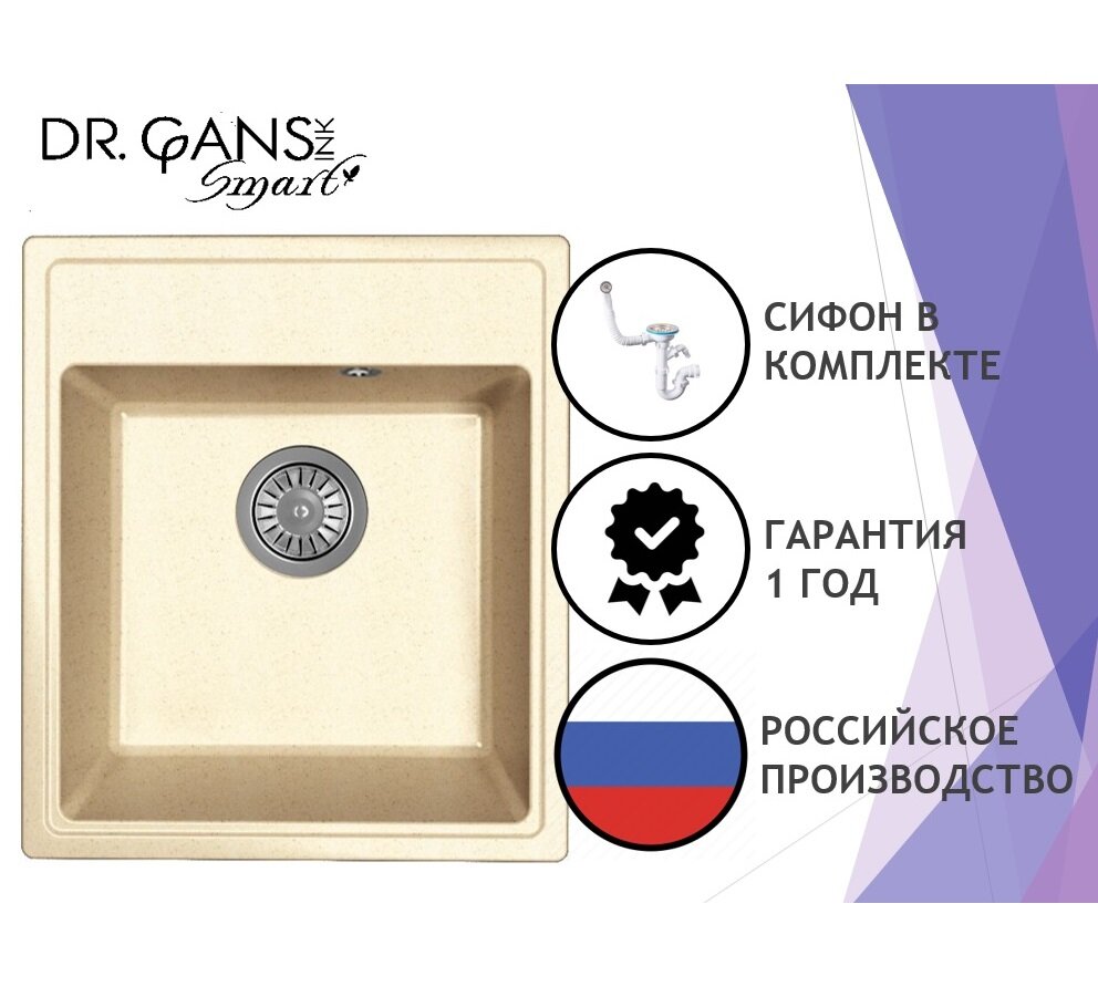 Мойка для кухни врезная каменная Dr. Gans Smart ОЛИВИЯ-420, цвет дюна, прямоугольная, 420х480х197 мм / раковина для кухни