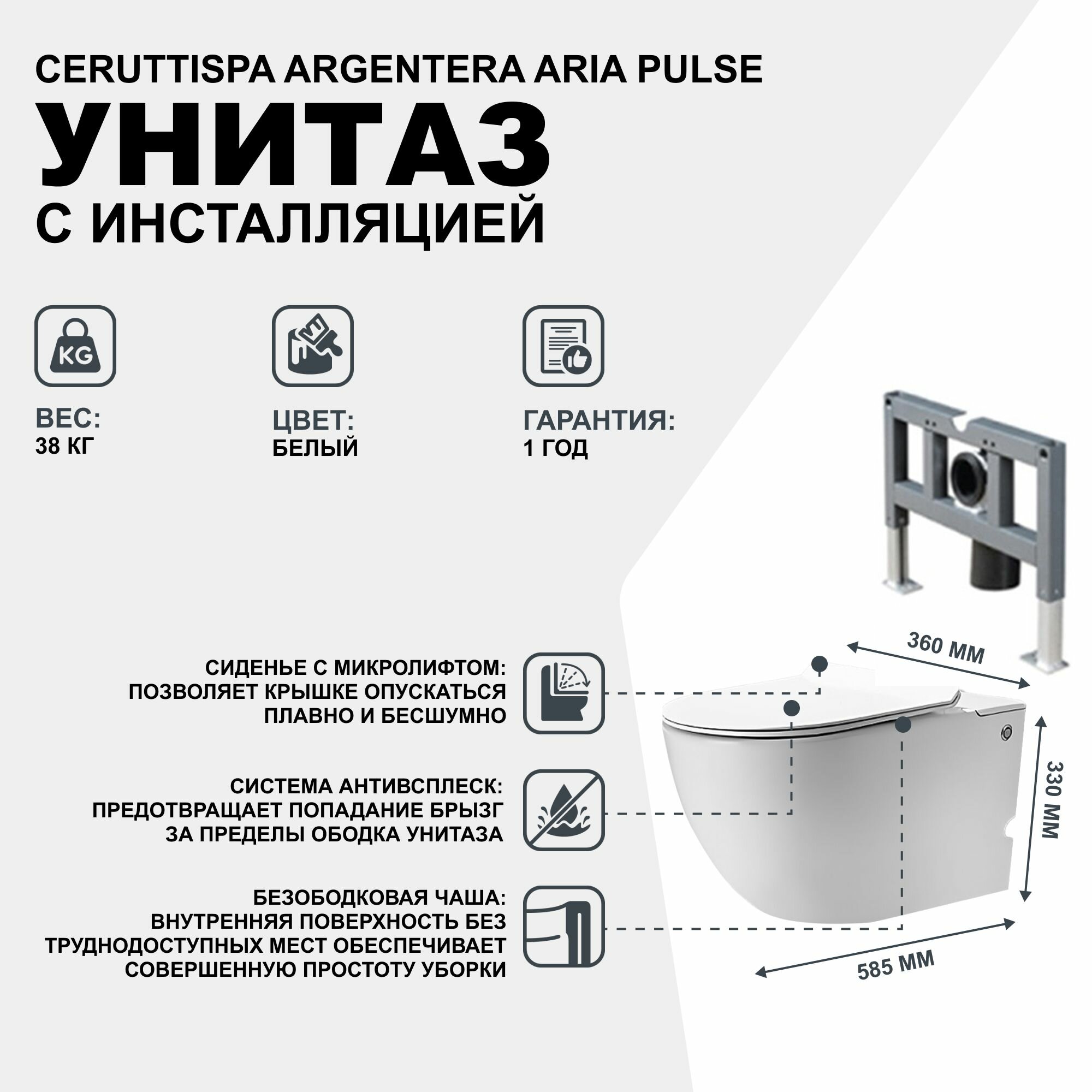 Унитаз ARGENTERA Aria Pulse подвесной с функцией импульсного смыва, инсталляция в комплекте Ceruttispa CT7279