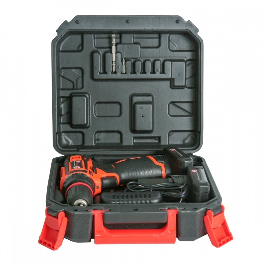 - обрезиненная рукоять, предотвращающая выскальзывание и уменьшающая риск поломки при падении; - прочный корпус, без щелей и люфта с местом для крепления бит; - имеется селектор скоростей (дрель/шуруповерт), регулировка предельного момента затяжки (18 позиций + режим сверления), реверсивный ход; - быстросъемный патрон; - подсветка рабочей зоны; - 2 литий-ионные АКБ на 2Ач (по заявленным характеристикам) + зарядное устройство с индикатором заряда; - отображение уровня заряда аккумулятора на самом шуруповерте; - крепкий пластиковый кейс, с двумя битами (одна - двусторонняя CR-V и PH2, другая маленькая PH1, среднее качество); - официальные сервисные центры для обслуживания (если верить приложению к инструкции) имеются в большинстве крупных городах и районных центрах; |