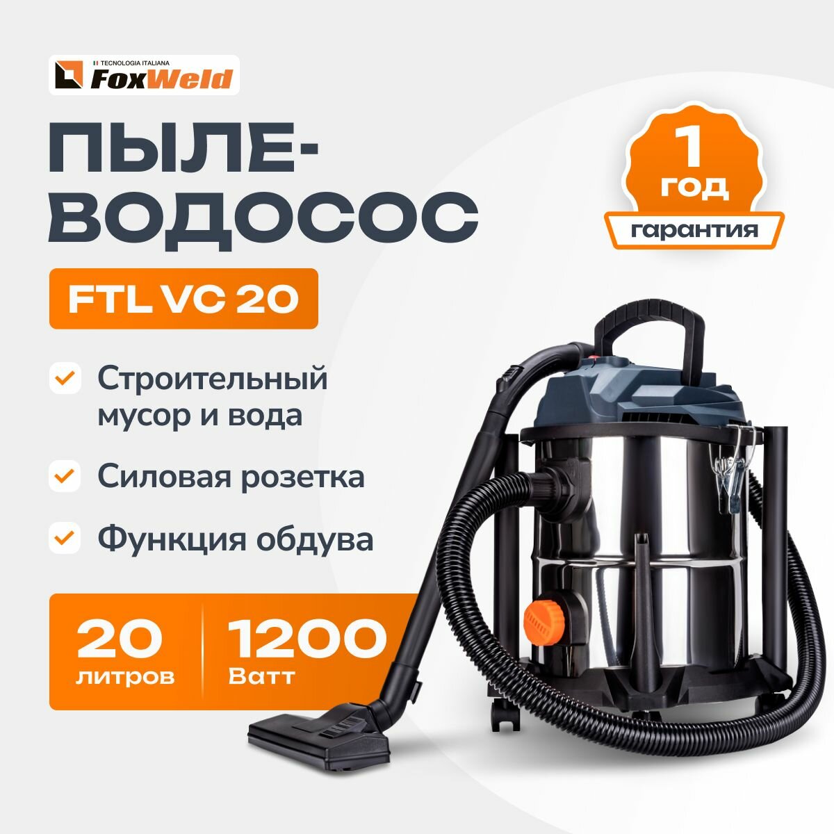 Профессиональный пылесос FoxWeld FTL VC 20, 1200 Вт, металл/черный