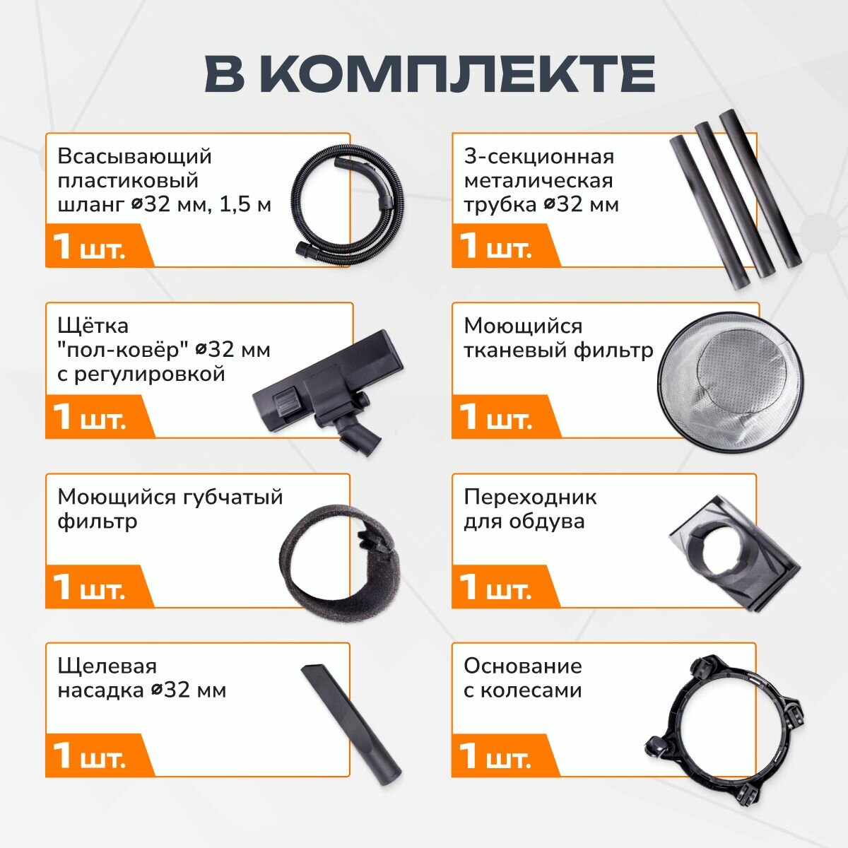 Пылесос строительный VC 20 л, 1200 Вт интересное: