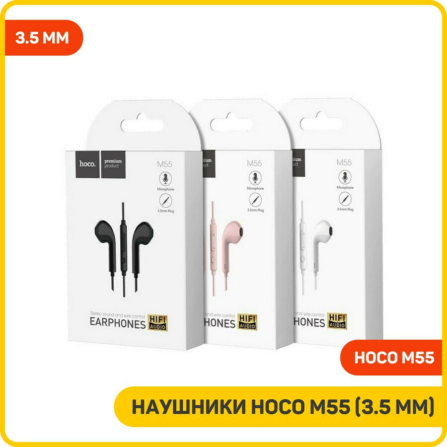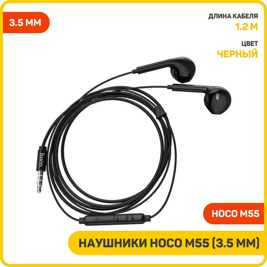 Наушники Hoco M55, проводные, вкладыши, микрофон, Jack 3.5, 1.2 м, черные