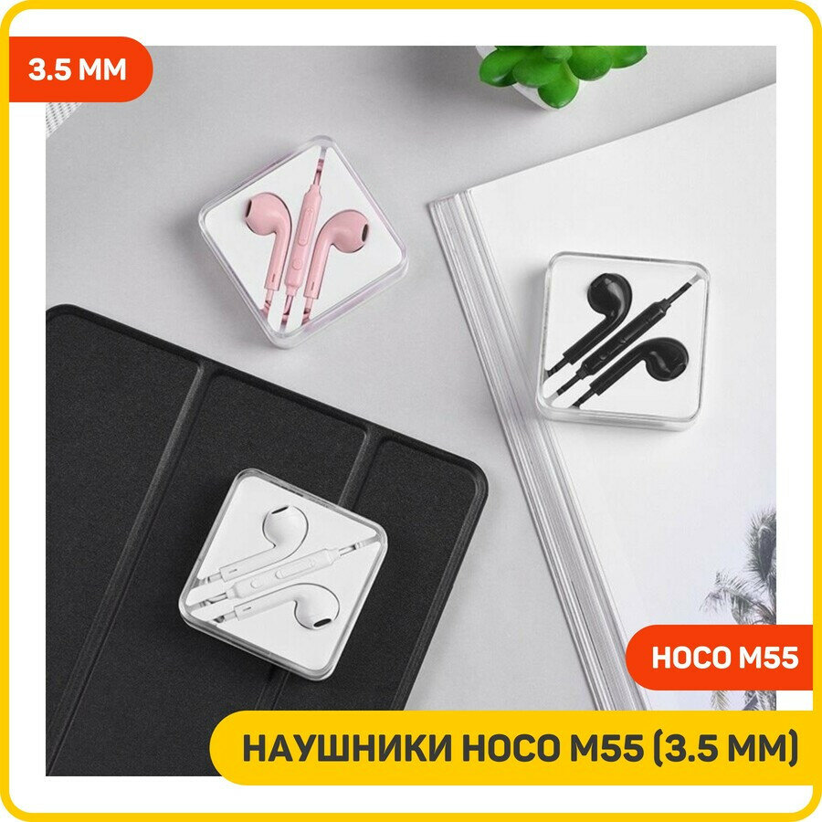 Hoco Наушники Hoco M55, проводные, вкладыши, микрофон, Jack 3.5, 1.2 м, белые