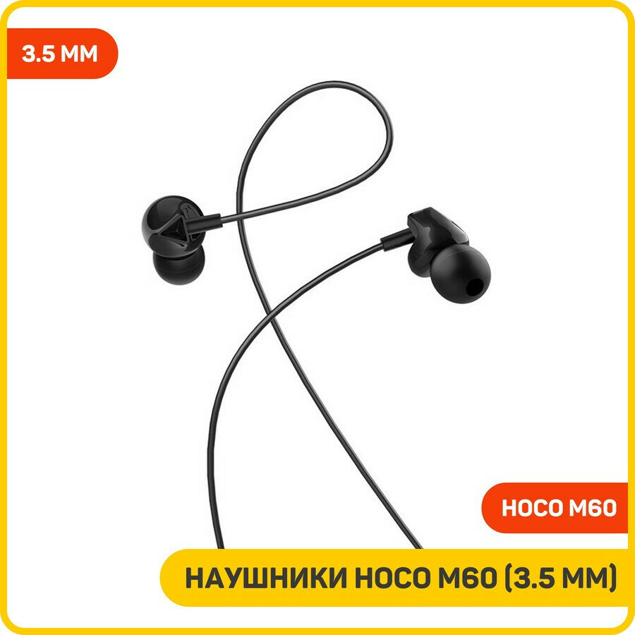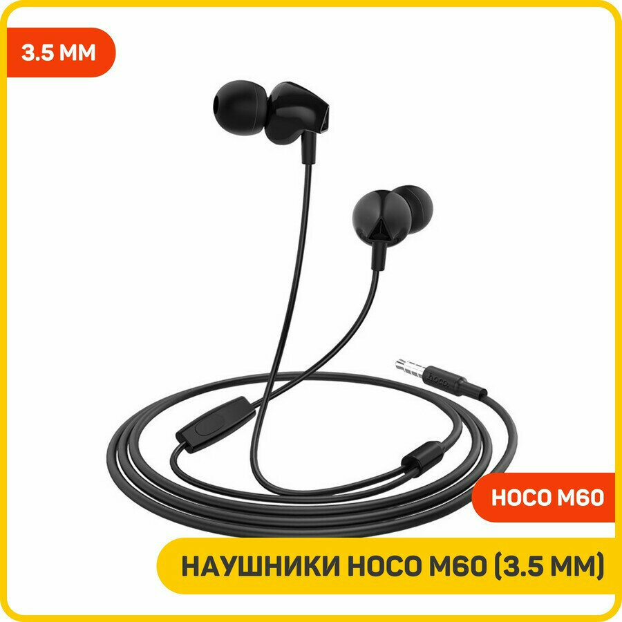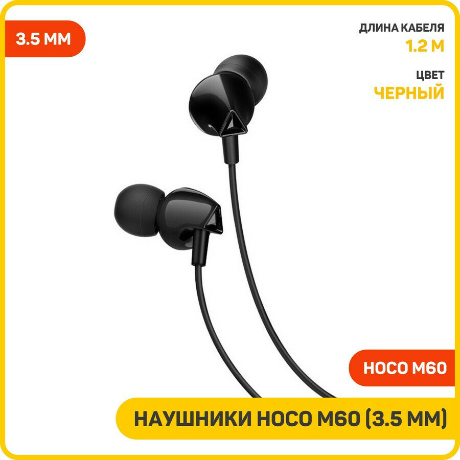 Hoco Наушники Hoco M60, проводные, вакуумные, микрофон, Jack 3.5 мм, 1.2 м, черные