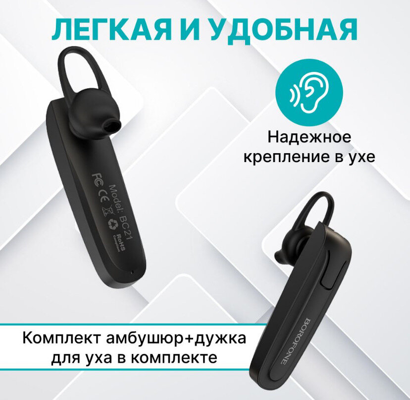 BOROFONE BC21/ Черная беспроводная Bluetooth гарнитура, для бизнеса, для офиса
