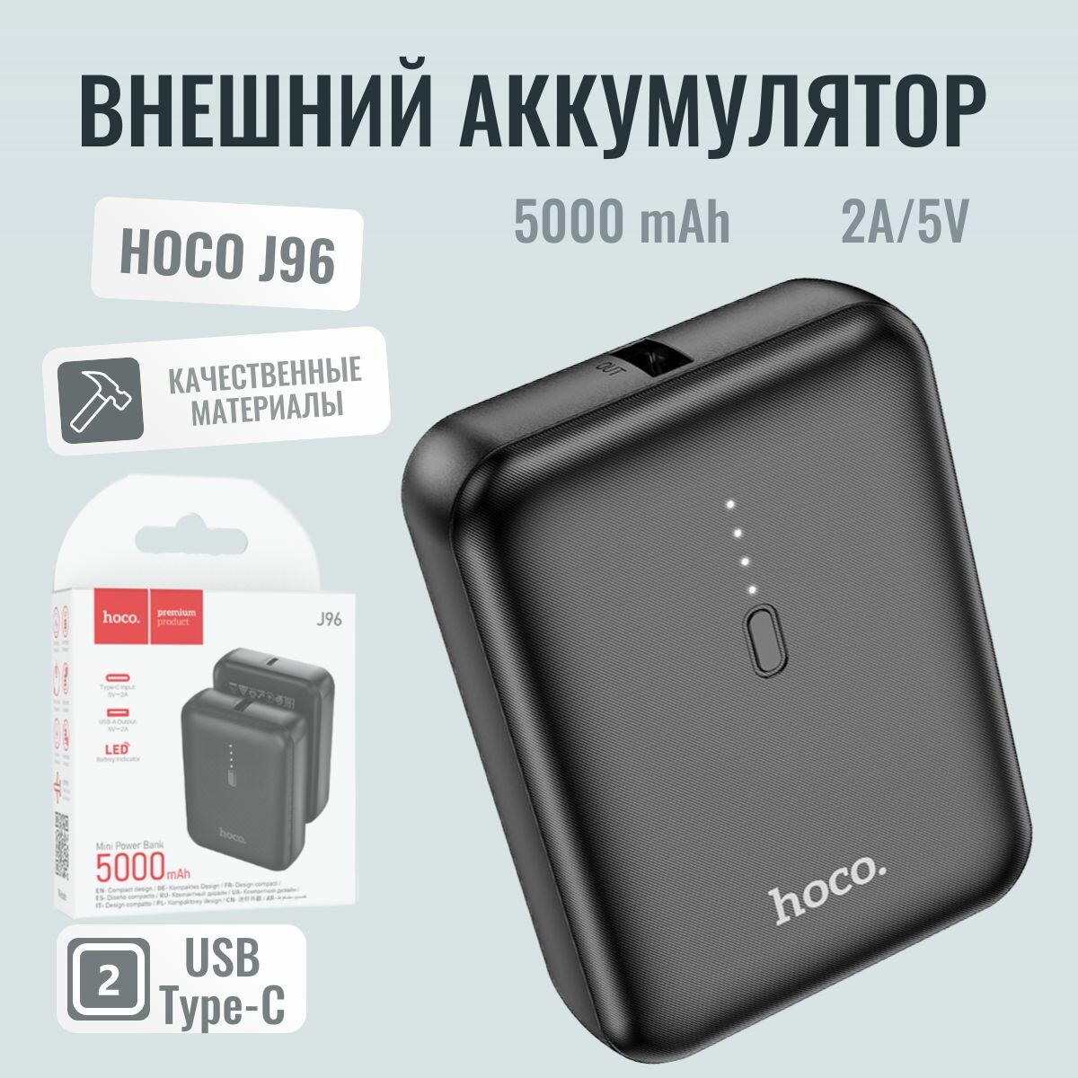 Ниже Вы можете прочитать отзывы на Внешний аккумулятор Hoco J96, 5000 мАч, 1 USB, 2 А, дисплей, чёрный, ознакомится с подробными характеристиками, посмотреть интересные обзоры и фотографии на Внешний аккумулятор Hoco J96, 5000 мАч, 1 USB, 2 А, дисплей, чёрный.