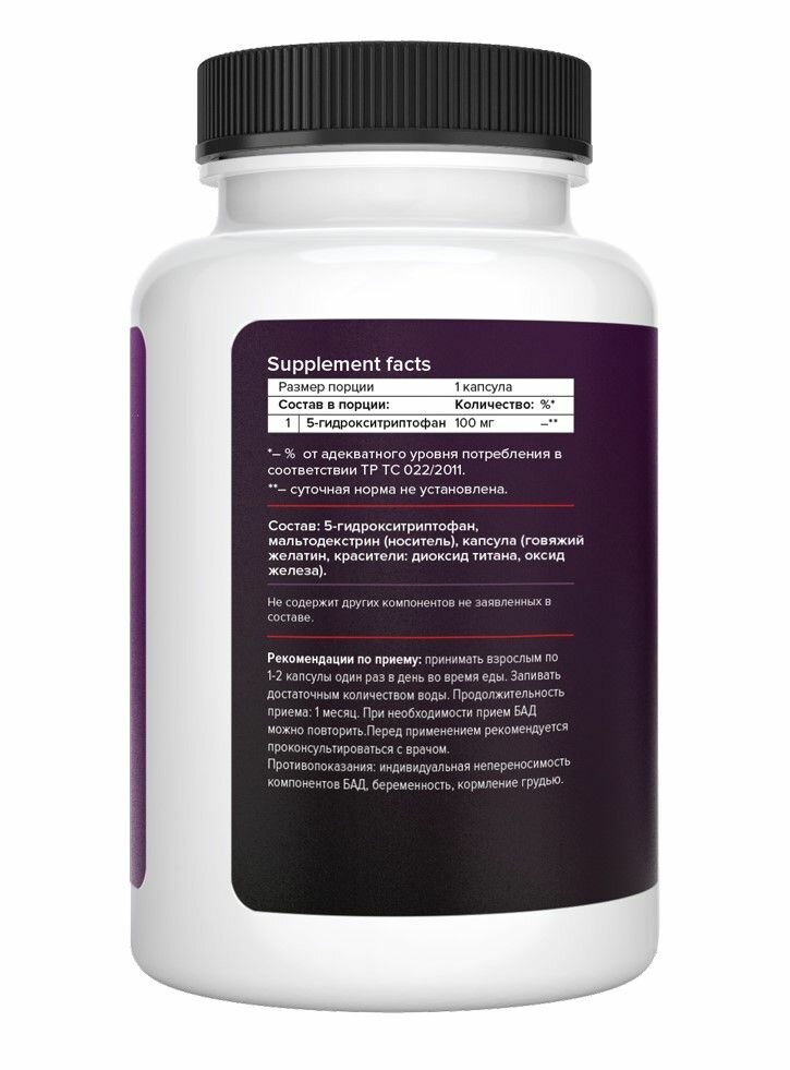 Купить 5 htp, 100 мг (5-гидрокситриптофан) Натуральный антидепрессант, успокоительное для взрослых, для похудения. 90 капсул