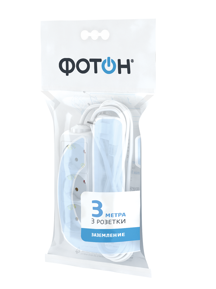 Удлинитель Фотон 16-33E 1х3 3м с/з с/в бел