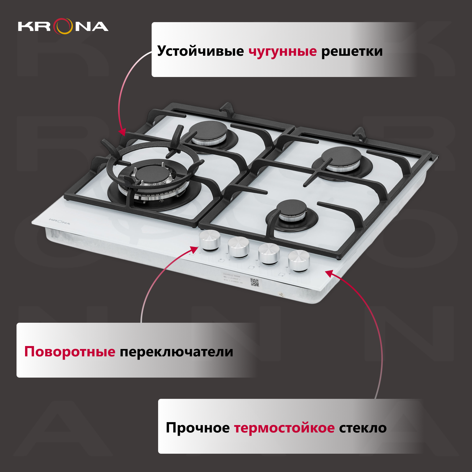 Варочная поверхность KRONA ALMA 60 WH встраиваемая газовая