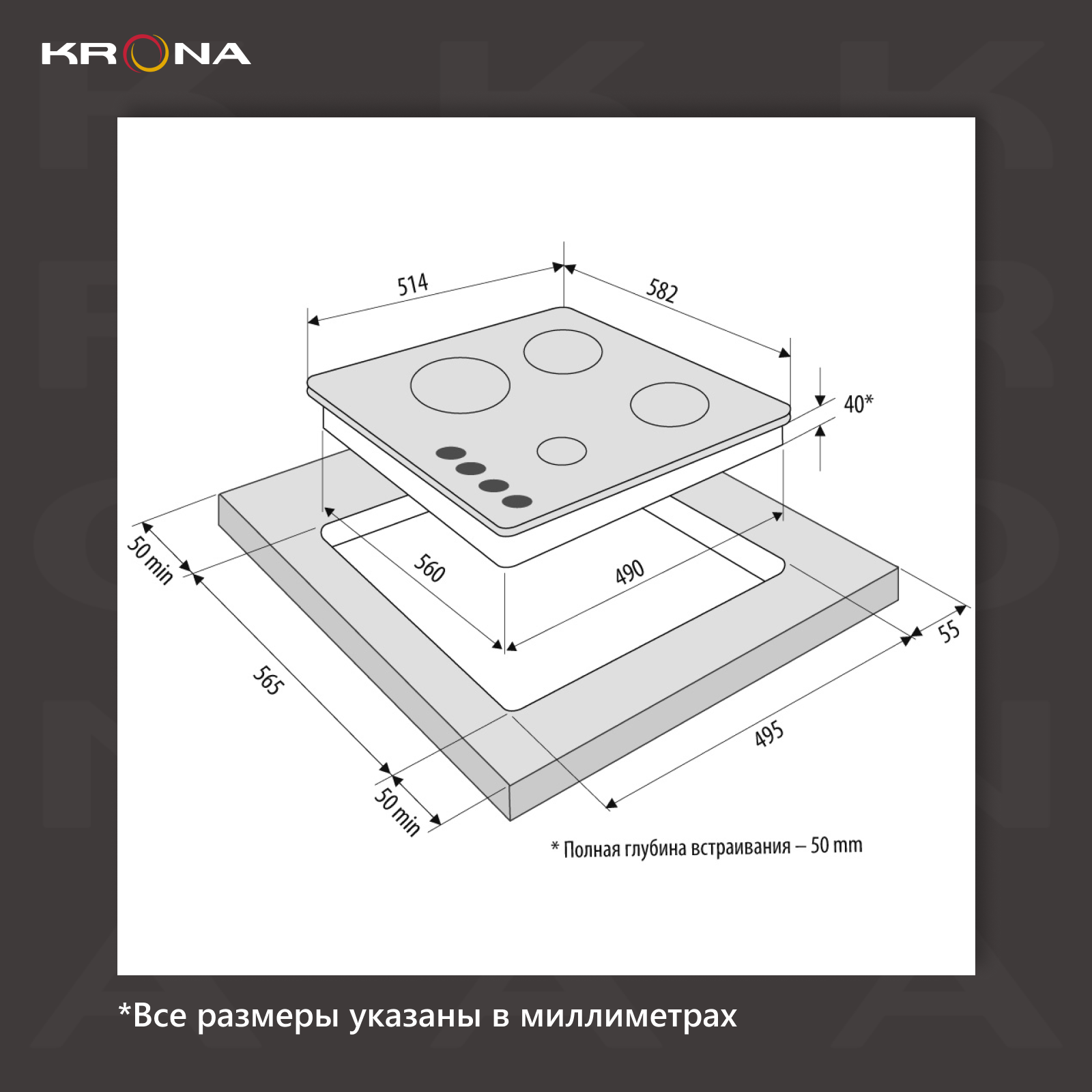 Варочная панель Krona ALMA 60 WH 514x582x100 Белый