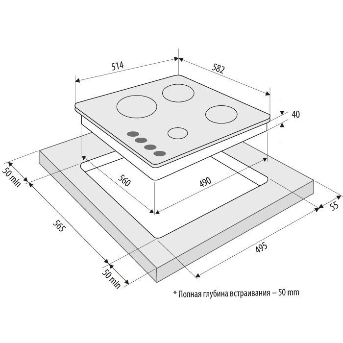 Встраиваемая независимая газовая поверхность Krona ALMA 60 WH
