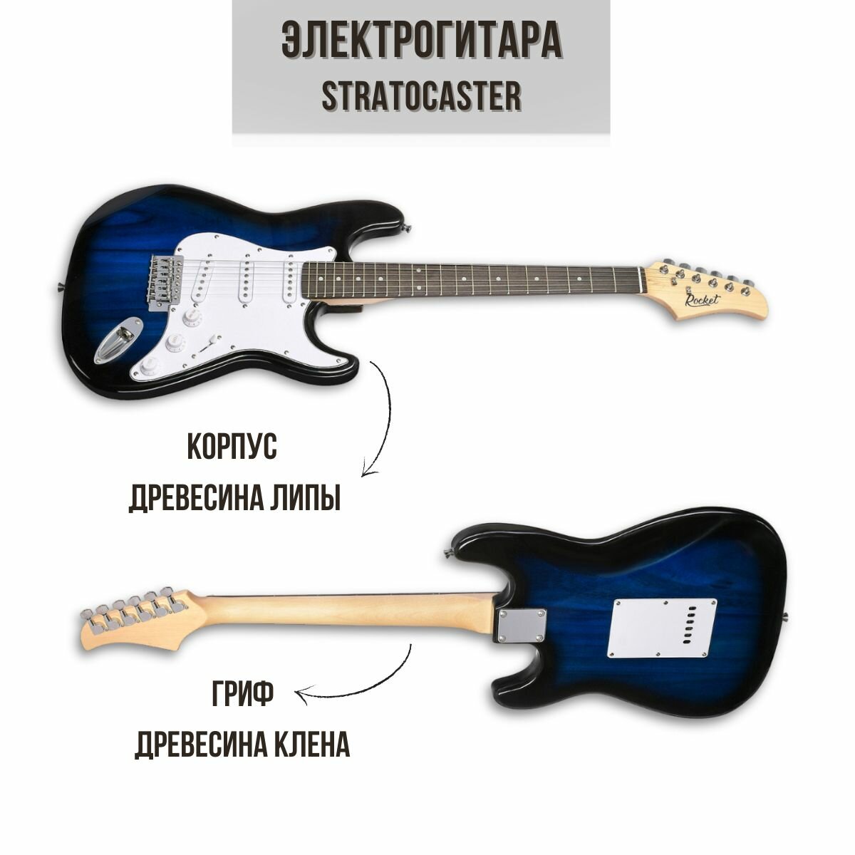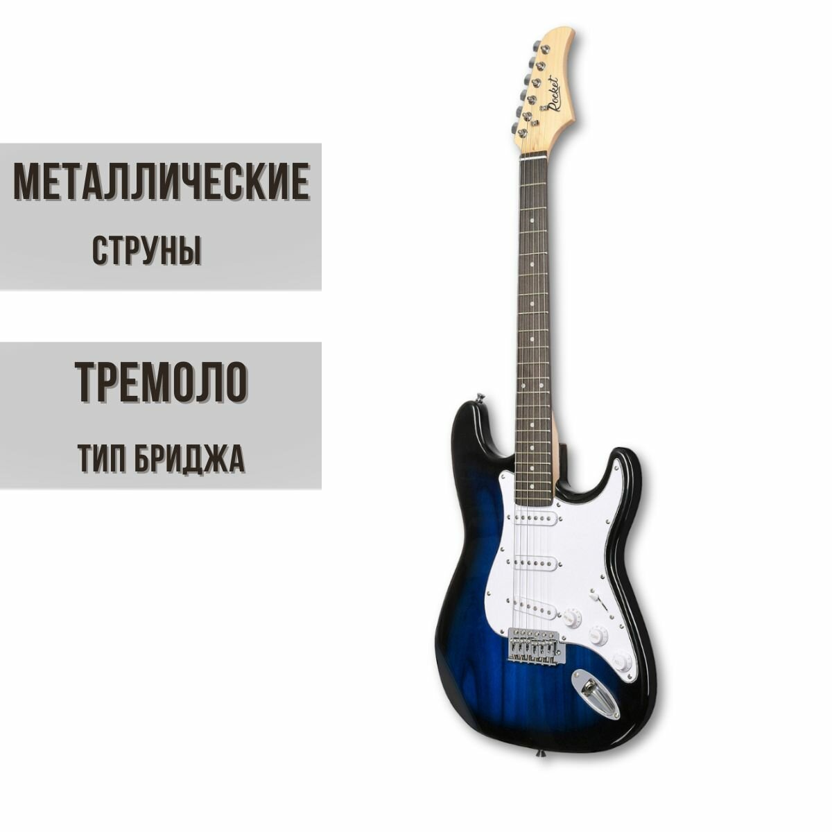 Купить Электрогитара ROCKET ST-01 BB Stratocaster SSS цвет синий берст в комплекте шнур Jack-Jack