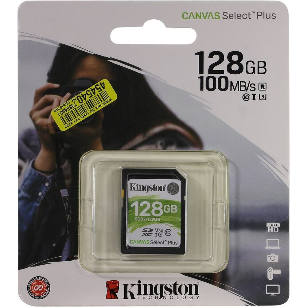 Карта памяти SDXC UHS-I U3 Kingston Canvas Select Plus 128 ГБ, 100 МБ/с, Class 10, SDS2/128GB, 1 шт., без адаптера