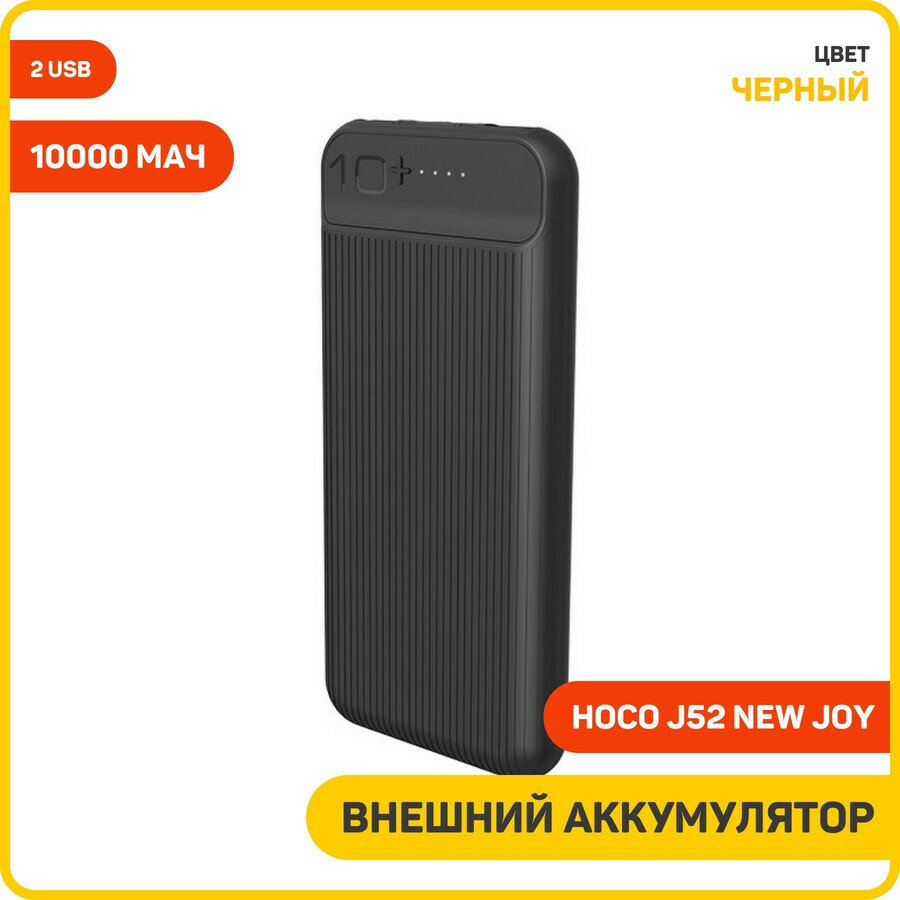 Купить Портативный аккумулятор Hoco J52 New joy 10000mAh, черный, упаковка: коробка
