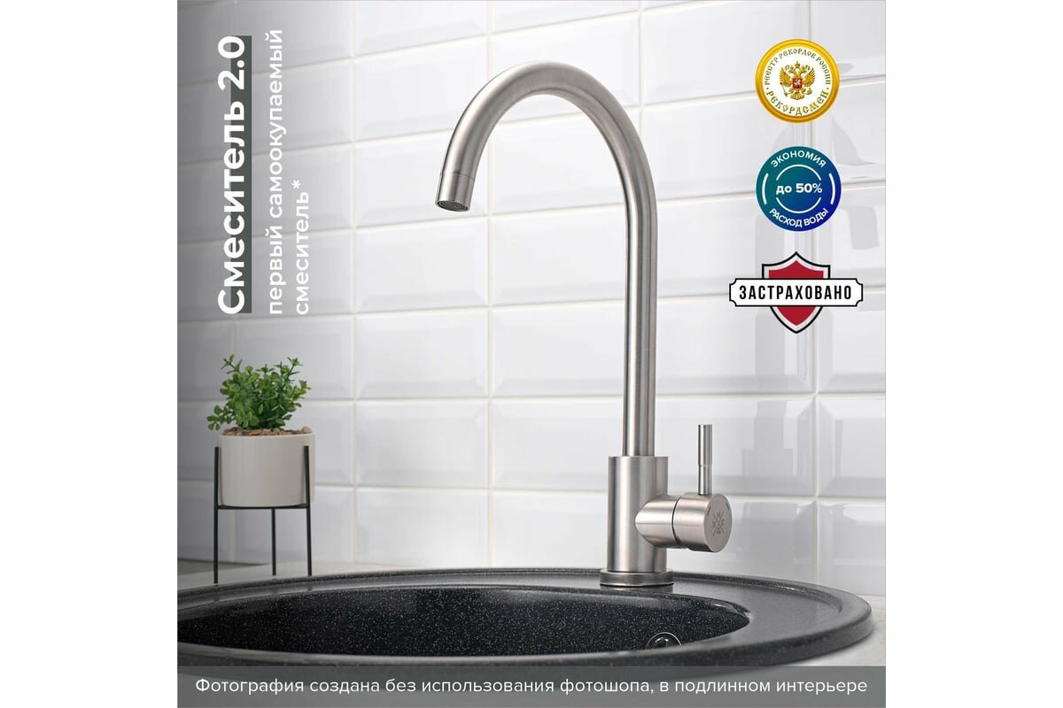 Смеситель для кухни Ростовская Мануфактура SUS124-017F нержавеющая сталь
