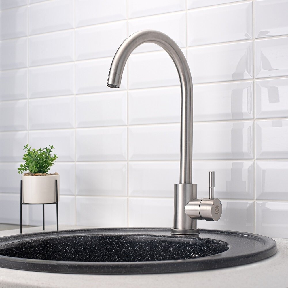 Смеситель для кухни RMS SUS124-017F, однорычажный, высокий излив, нержавеющая сталь