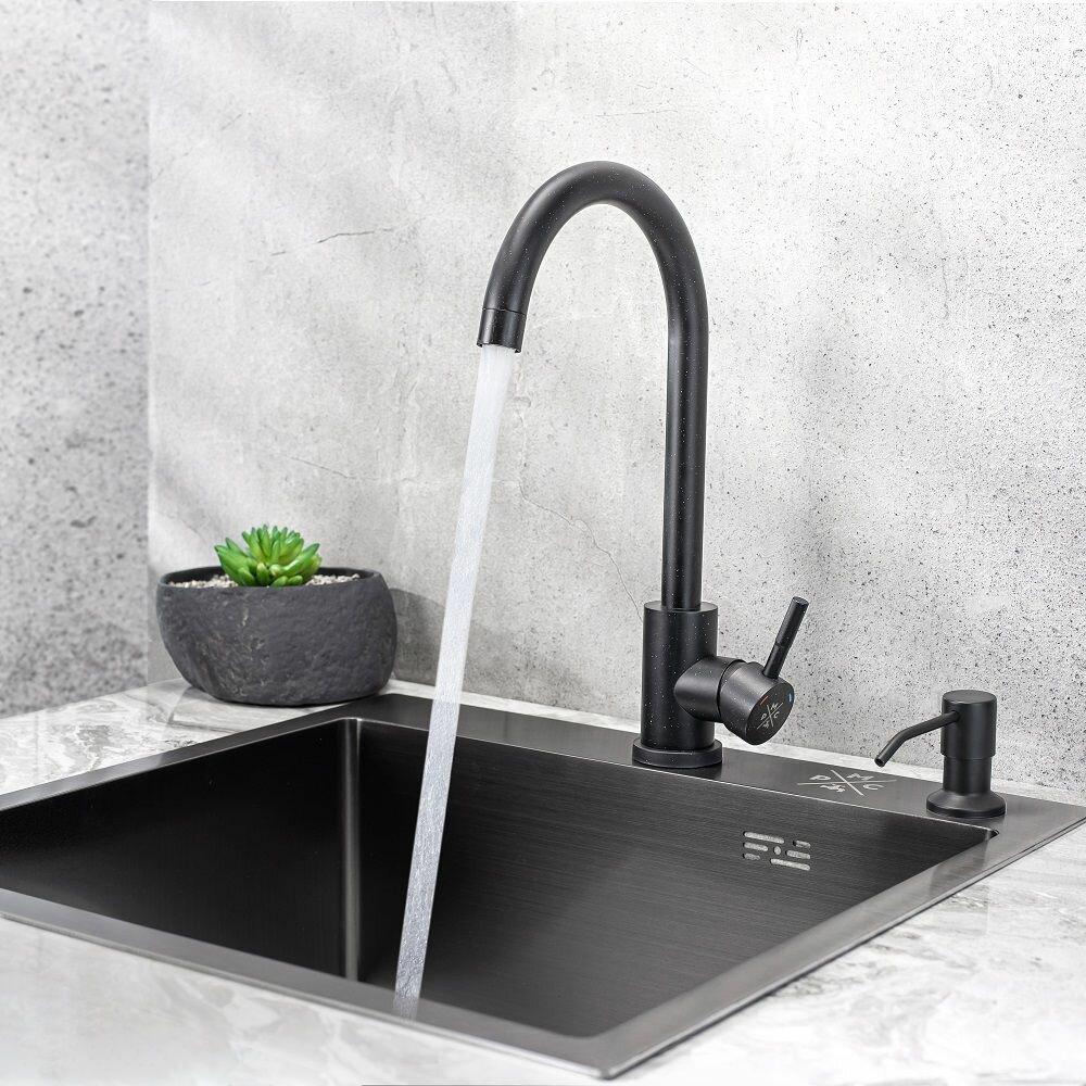 Смеситель для кухни Ростовская Мануфактура Сантехники SUS126BL-016F Нержавеющая сталь Черный