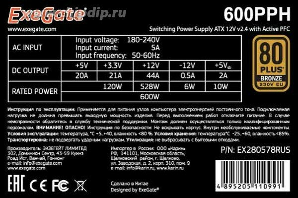 Ниже Вы можете прочитать отзывы на Блок питания 600W ExeGate 600PPH OEM (EX280578RUS-OEM), ознакомится с подробными характеристиками, посмотреть интересные обзоры и фотографии на Блок питания 600W ExeGate 600PPH OEM (EX280578RUS-OEM).
